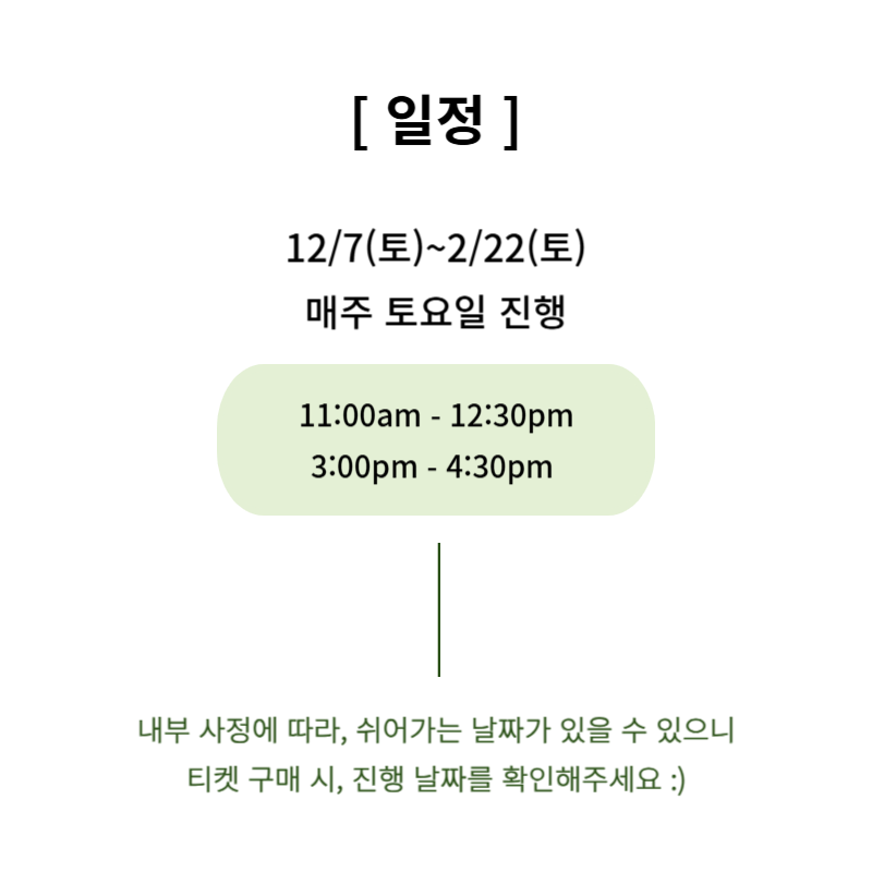 • 코스 일정: 12/7(토)~2/22(토) 매주 토요일 진행