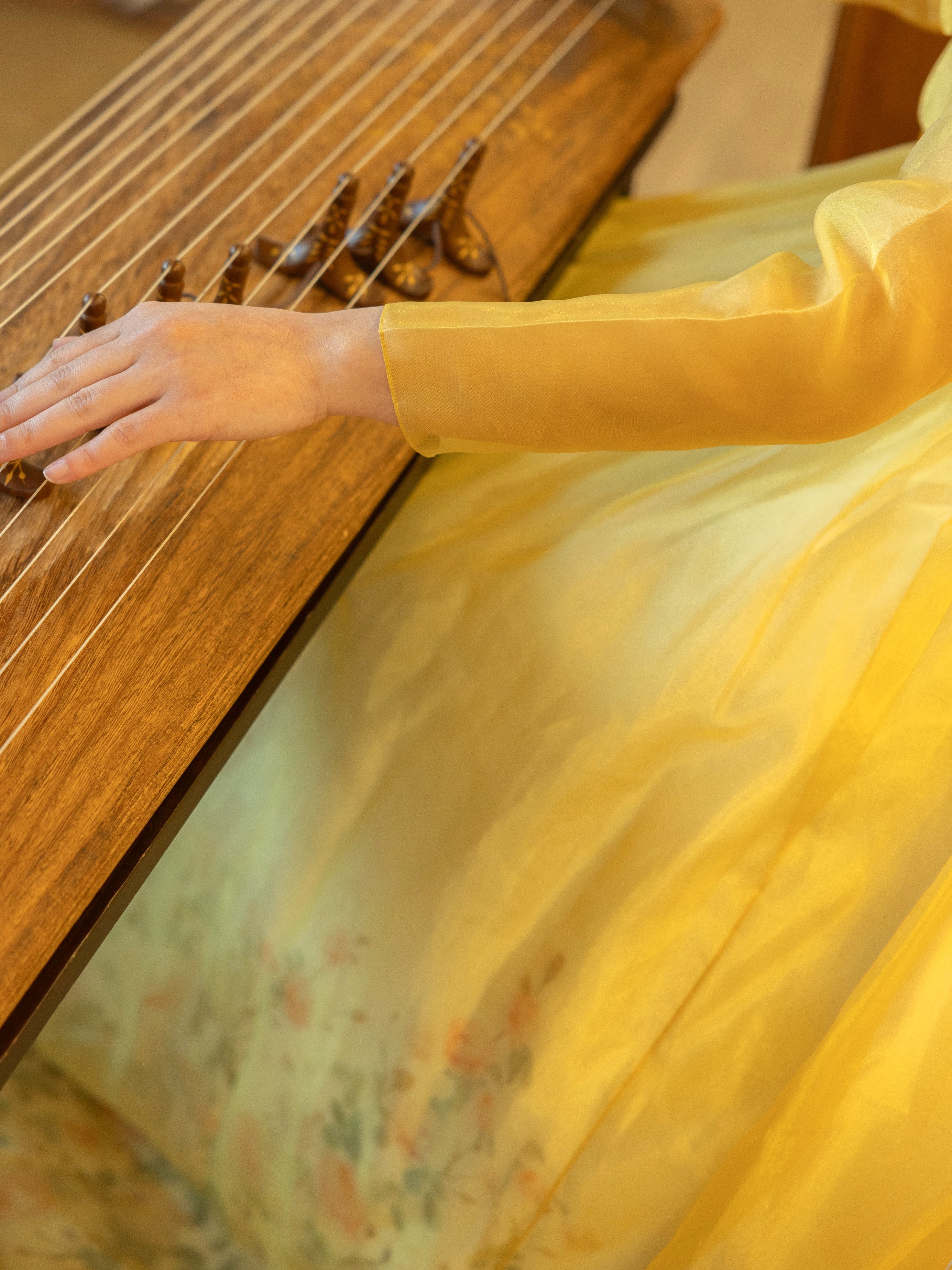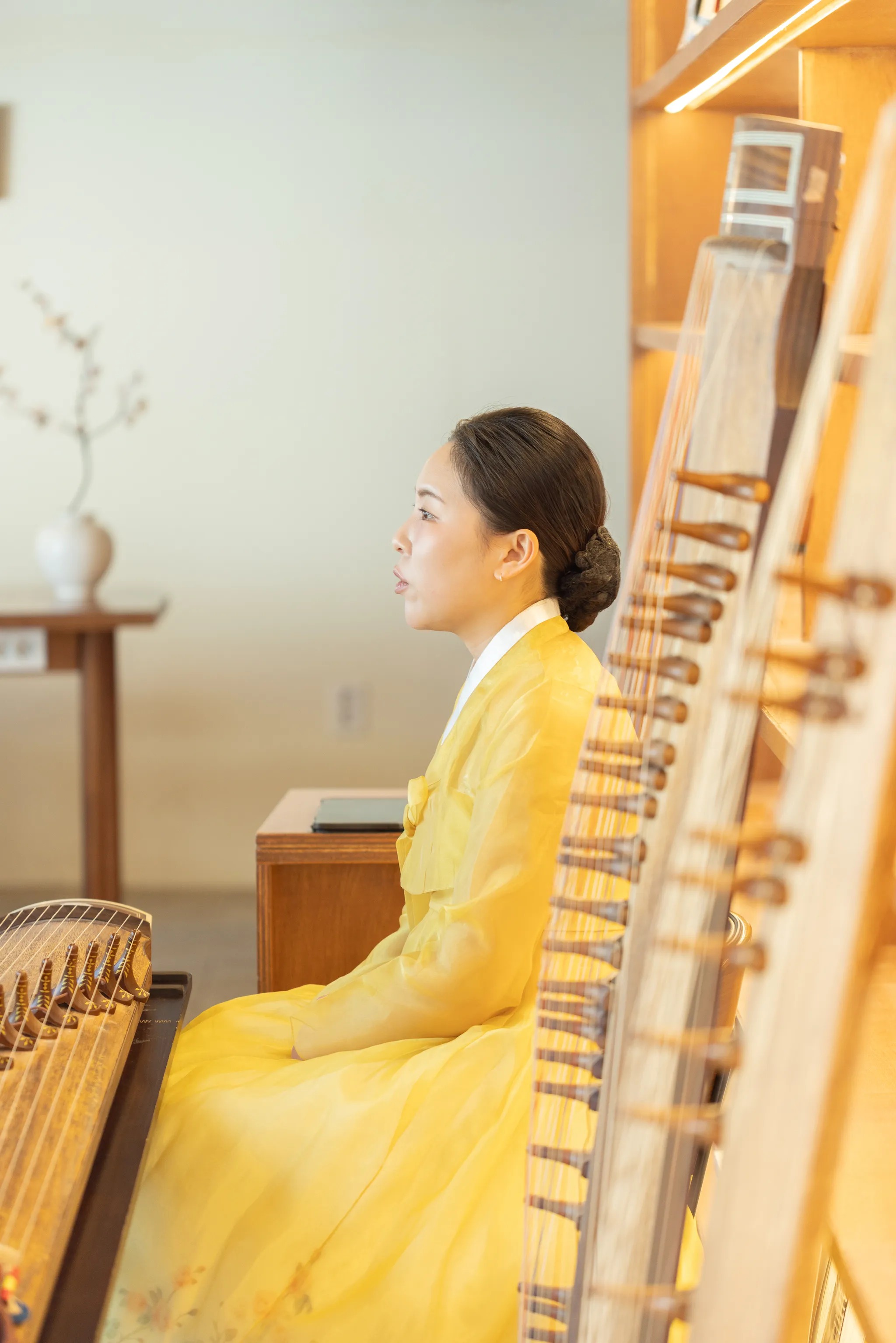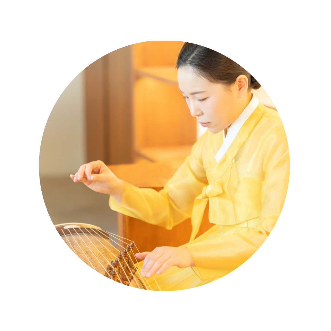 오동나무와 명주실로 만든 가야금가야금은 자연의 재료와 함께 자연의 아름다움을 선보이는 악기입니다. 가야금의 은은하고 맑은 소리는 바람에 실려 흐르는 듯 자연과 하나 되어, 공간을 따뜻하게 물들입니다.
