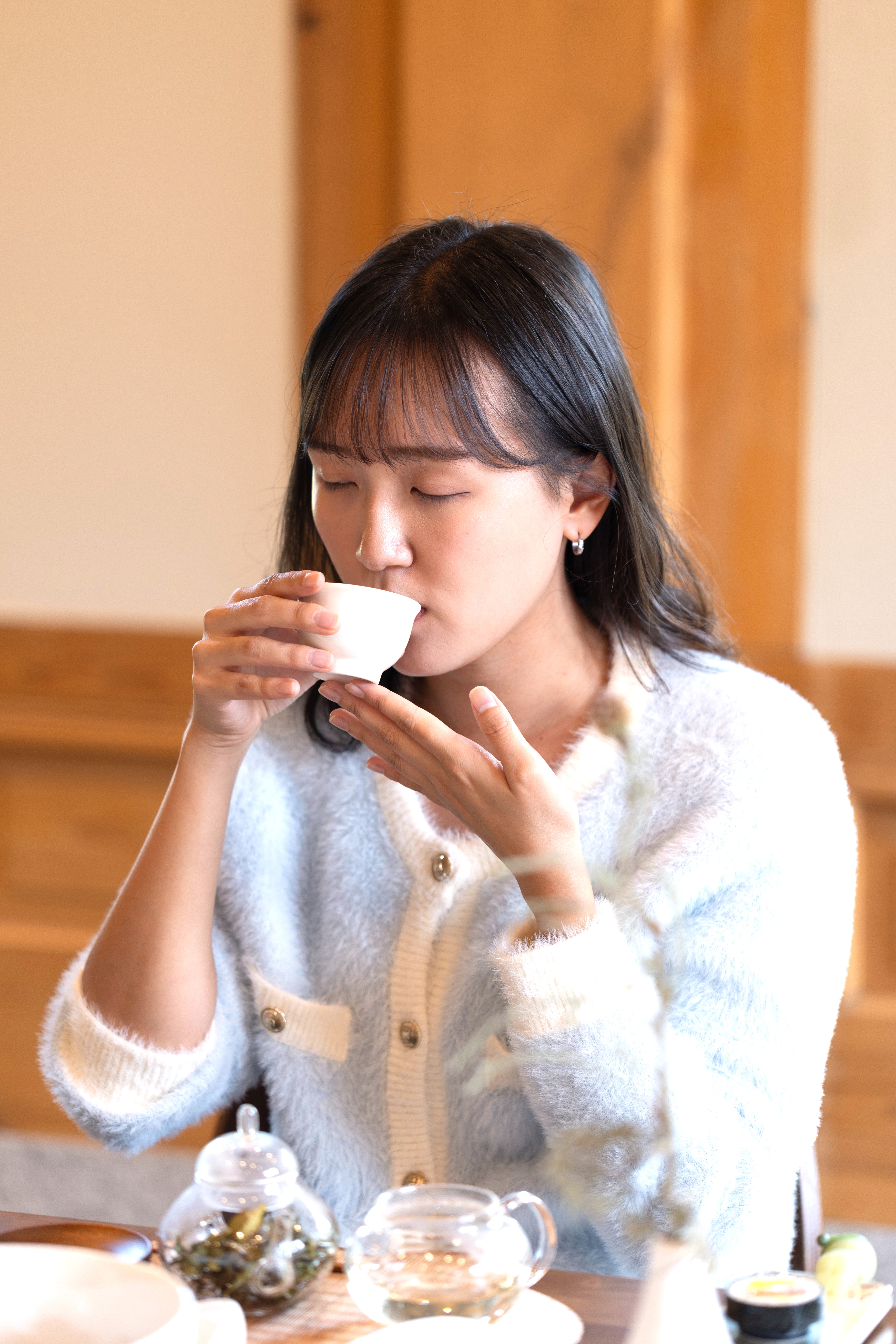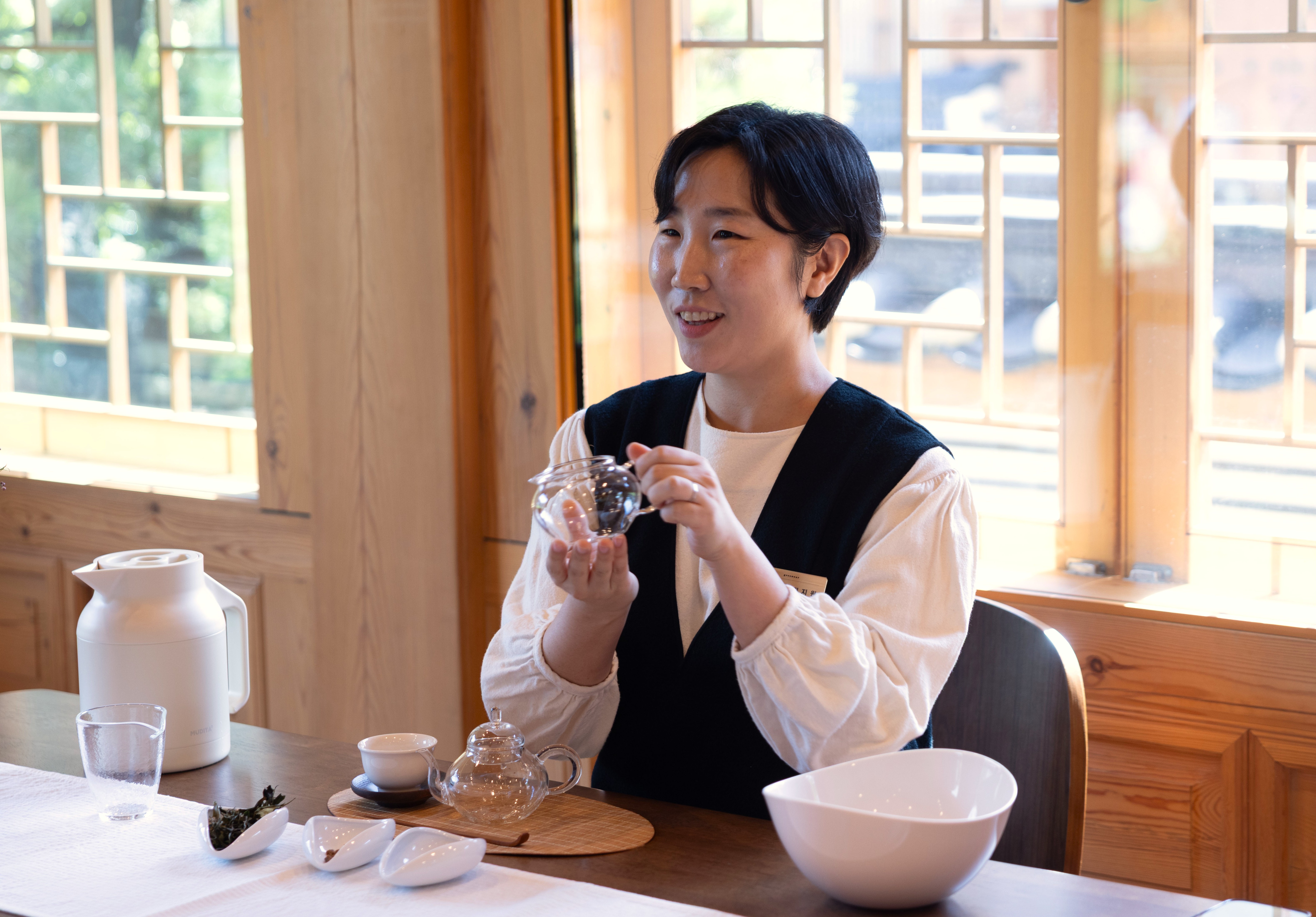 그래서 누군가와 차 한 잔을 나누는 일은 자연의 섭리를 나누는 일과 같다고 생각해요. 저와 차를 나누는 순간만큼은 차 한 잔을 통해 자연을 느낄 수 있기를 바라요. 특히 향기로운 우리 녹차는 건조하고 딱딱한 찻잎을 두세 번 우려내면 마치 나뭇가지에서 갓 피어난 새싹과 같은 모습으로 돌아간답니다.