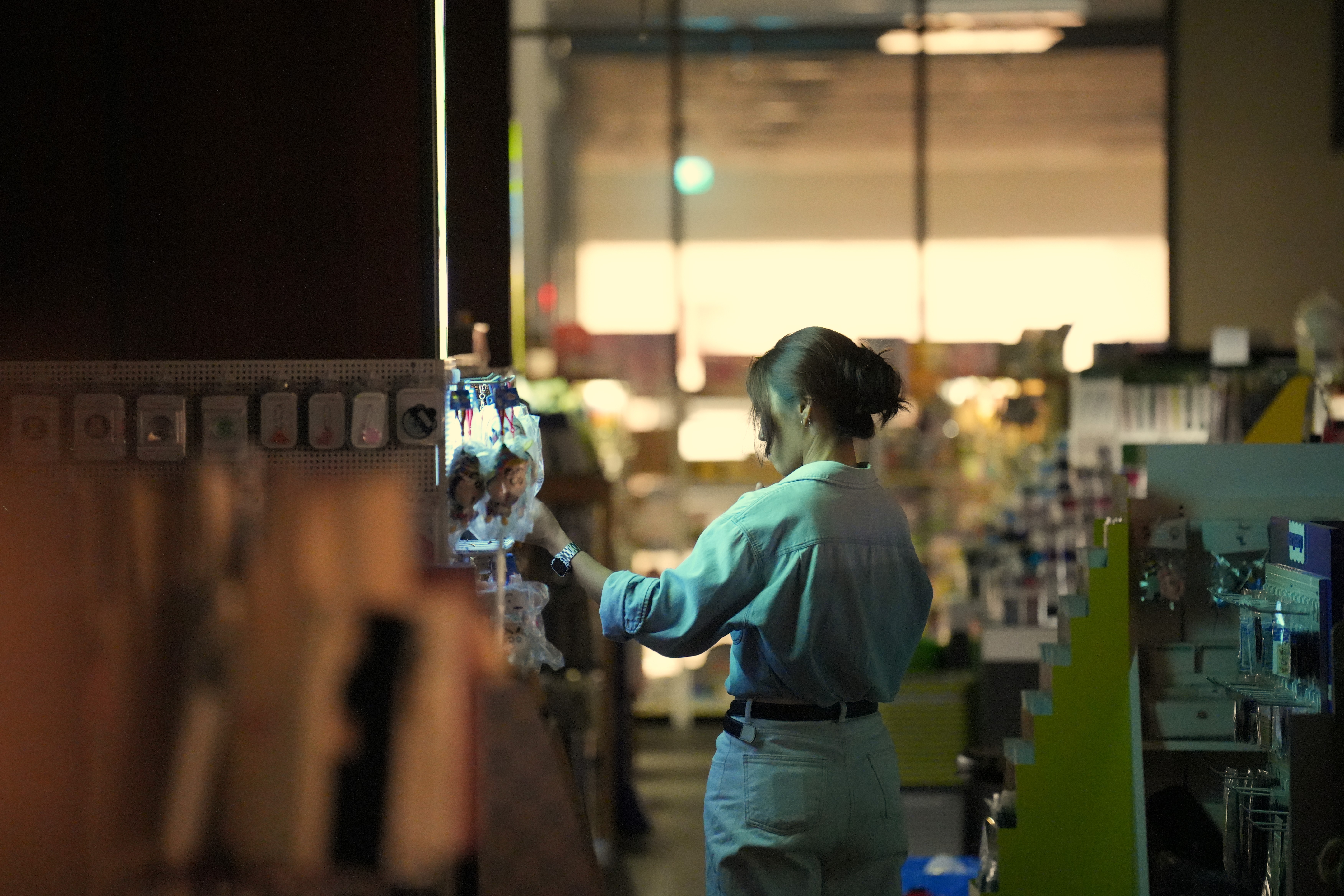 늦은 밤 고요함이 내려앉은 서가 사이,